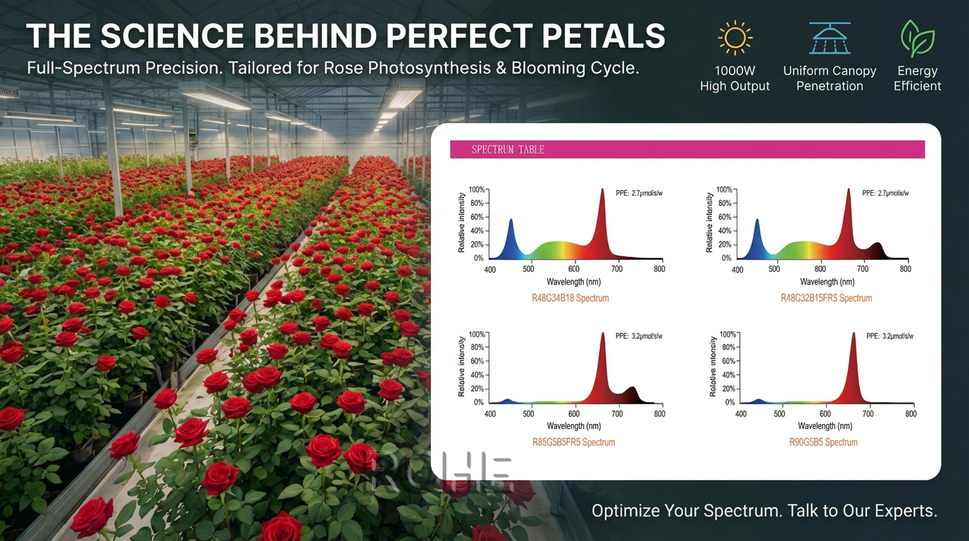 For professional rose growers, lighting is everything. Your choice directly impacts bloom size, color vibrancy, stem strength, and ultimately, profitability. If you're still using traditional 1000W High-Pressure Sodium (HPS) fixtures, it's time for a revolution.